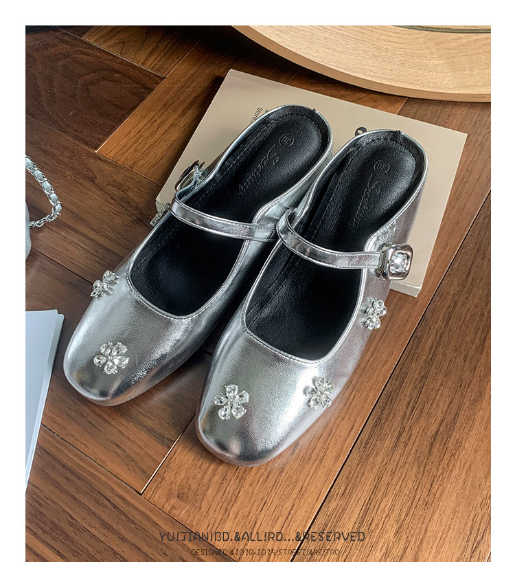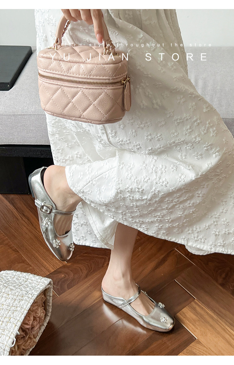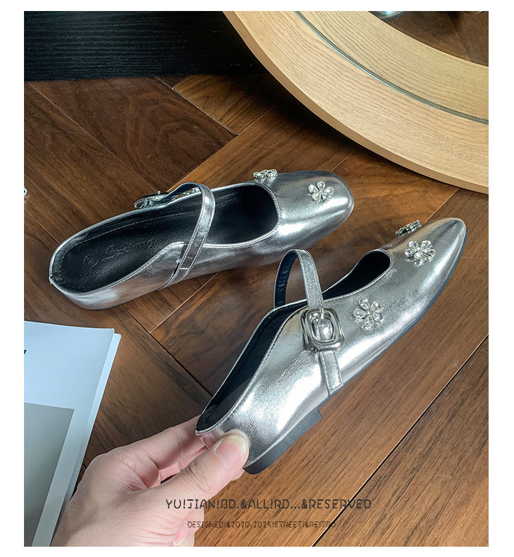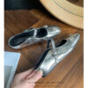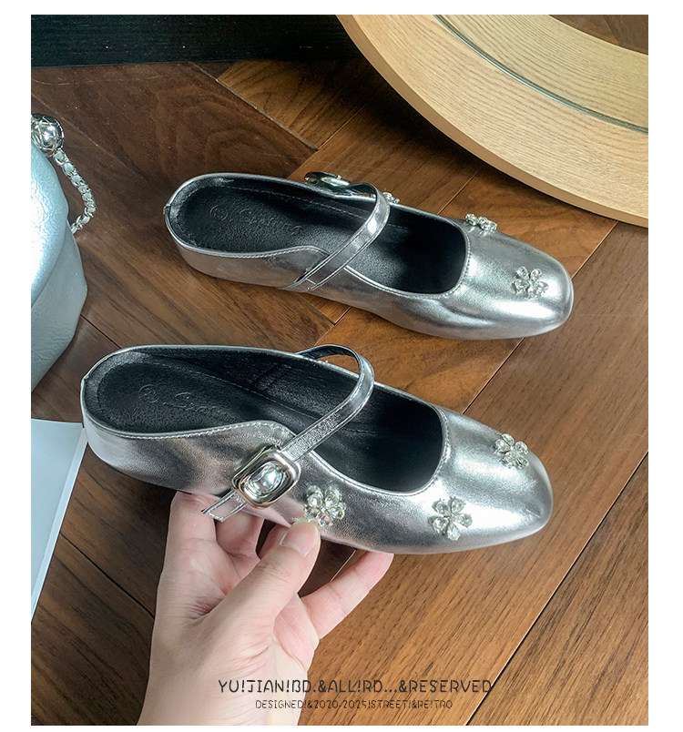 The perfect fusion of ethereal shimmer and anatomical ease. Designed for the modern woman who demands a high-fashion “showstopper” without the high-heel heartbreak, these Crushed diamond ballet-style mary jane flats slippers are your new wardrobe icons. Featuring a high-shine metallic silver upper and a velvety-soft interior, these flats offer a premium “jewel-box” aesthetic with the liberation of a barefoot feel. The elegant silhouette exudes a sense of luxury, and the backless slipper design is both casual and sophisticated. It’s perfect for any occasion, whether it’s a grand opening ceremony, a romantic starlit dinner, or a refined weekend brunch.